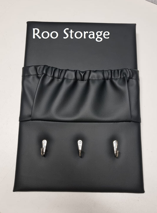 Caravan storage pocket 300 x 450mm single pocket with three hooks Vinyl or faux leather